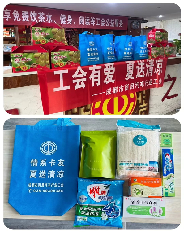 截止8月中旬,成都市商用汽车行业工会为货车司机及行业职工发放降温药品、清洁用品、茶叶、水果等实物礼包共计3万余元,累计关爱385人次。行业工会将继续坚持服务关爱货车司机群体的宗旨,努力当好他们的“娘家人”,积极解决他们的急难愁盼,切实提高广大货车司机的获得感、幸福感。